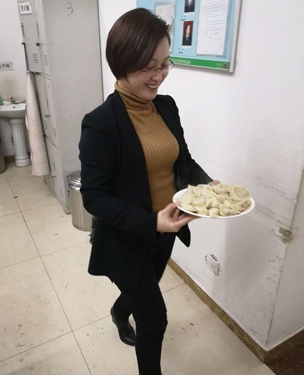 梁玉勤 設(shè)備副總 現(xiàn)在高新區(qū)負(fù)責(zé)新項目的建設(shè),率先沖到廚房里給大家端餃子?磥砣巳缙涿,確實很勤勞啊