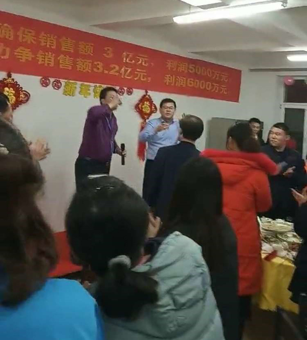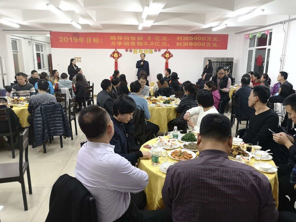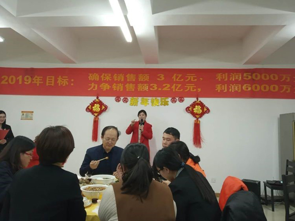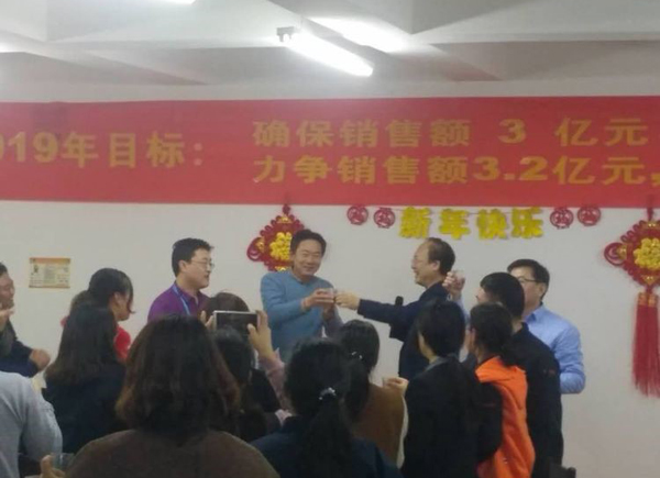 活動第一項:Boss致辭! 董事長首先給大家拜年鞠躬,感謝大家一年來的付出;仡2018年的艱難與艱辛,社會經(jīng)濟(jì)形勢疲軟,公司雖然緊張但已經(jīng)是同地區(qū)過的最好的大公司,感謝大家這一年對公司的信任與支持,同時也肯定了2018年是公司業(yè)績最優(yōu),技術(shù)突破最多,成績最好的一年。 展望2019年,國家政策重大利好,公司度過了最艱難的時期,資本支持足,公司將進(jìn)入高速發(fā)展階段。要求利潤由兩千多萬要邁向五千多萬,并挑戰(zhàn)六千萬目標(biāo)?磥硇』锇閭円獢]起袖子加油干啦。! 董事長強(qiáng)調(diào)公司由新三板改創(chuàng)業(yè)板或科創(chuàng)板,公司產(chǎn)品屬于高精尖,國家重點支持的產(chǎn)業(yè),是幾代人干不完的事業(yè)。大家要對公司有信心,而且爆料董事長將給予一部分老員工與干部低價購買股份的機(jī)會,公司是混合所有制公司,希望大家共同都享受公司的利潤分紅。小伙伴們,賺錢的機(jī)會要來了。不知道誰會有這樣的榮譽(yù)呢,總之大家好好干,衷心的把事業(yè)做好總會有回報的。 接下來董事長重點強(qiáng)調(diào)了對所有參加的員工提出了工作要求,大家要注意了,接下來各部門開會可要好好分析工作如何開展,如何達(dá)到董事長的要求: 1 行政管理將是2019年重要的工作,彌補(bǔ)公司行政管理的短板,各部門要共同加強(qiáng)職能部門管理意識,建立流程化思維,服務(wù)好生產(chǎn)與銷售。 2 要積極開展批評與自我批評工作,用好國家領(lǐng)導(dǎo)人都在用的管理工具。使全員工作的同時,有批評有獎勵有評價有意義。吾日三省吾身! 3 提出電子商務(wù)部要加強(qiáng)設(shè)計思維,多開發(fā)高端日用品,不走量的路線,讓我們用的茶杯酒杯都是我們自己的中硼產(chǎn)品,把中硼這一優(yōu)勢材料推廣出去。 考核部提醒大家,接下來的工作大家要好好思考了,各部門會議要強(qiáng)調(diào)2019年工作該如何開展了。