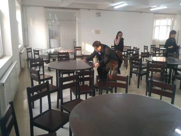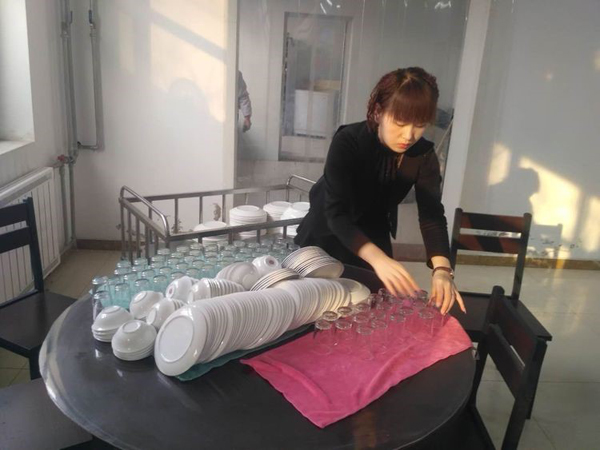 活動結(jié)束,大家共同幫助食堂工作人員收拾餐桌,四星人就是高素質(zhì)。