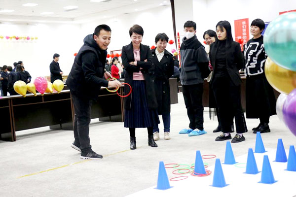 為豐富公司文化娛樂(lè)活動(dòng),增進(jìn)員工之間互動(dòng)交流,公司在2022年2月11日舉辦了《愛(ài)四星慶元宵,猜燈謎互動(dòng)闖關(guān)嘉年華》主題活動(dòng),以大家喜聞樂(lè)見(jiàn)、形式多種、通俗易懂的游戲節(jié)目?jī)?nèi)容,營(yíng)造一個(gè)充滿節(jié)日氛圍的歡樂(lè)活動(dòng)。 本次元宵佳節(jié)活動(dòng)共分為7個(gè)游戲環(huán)節(jié),分別是猜燈謎、雙人背靠背夾氣球、踢鍵子、套圈、飛鏢、搶水杯、你比我猜。 一元復(fù)始,大地回春,賞花燈,猜燈謎,吃湯圓,是我國(guó)人民傳統(tǒng)的慶祝元宵節(jié)的形式,在新的一年里,活動(dòng)主持人時(shí)竹影代表公司領(lǐng)導(dǎo)和工作人員為所有職工帶去了新春的祝福。 燈謎是我國(guó)特有的一種雅俗共賞、民間風(fēng)格濃郁的文字聯(lián)想游戲,它啟迪思維、陶冶情操、開發(fā)智力、增長(zhǎng)知識(shí)、歷來(lái)深受廣大群眾所喜愛(ài)。今年的燈謎設(shè)計(jì)是結(jié)合企業(yè)年度經(jīng)營(yíng)目標(biāo)、四星文化、產(chǎn)品知識(shí)和國(guó)學(xué)文化及謎語(yǔ)混搭的方式出題,得到了員工踴躍參與。 猜燈謎主持人:常世明、李偉 還有我們充滿趣味性的雙人背靠背夾氣球互動(dòng)游戲,兩位美女主持人熱情洋溢,朝氣蓬勃,得到了員工一致性好評(píng)。 雙人背靠背主持人:遠(yuǎn)楠楠、王明明 踢毽子游戲也得到了廣大職工的熱情參與 踢毽子主持人:楊金鳳、寇增榮 套圈游戲 套圈主持人:李玉潔、趙美美 搶水杯游戲 搶水杯主持人:董士梅、韓俊花 你比我猜 你比我猜主持人:劉汝迎、王宏宇 飛鏢游戲 飛鏢游戲主持人:畢景濤、張翠 董事長(zhǎng)也參與到了飛鏢游戲環(huán)節(jié),與職工同慶、同歡、同樂(lè)。 活動(dòng)在大家的歡聲笑語(yǔ)中結(jié)束了,各位同事的熱情也得到了釋放,每一位同事都滿載而歸。