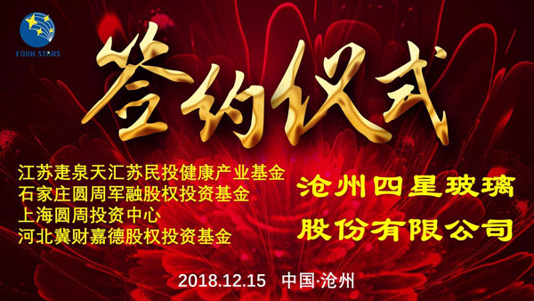 今天是一個特殊的日子!是我們四星玻璃發(fā)展史上的又一個新的里程碑,是我們公司成立26年來的又一次重大事記! 近年來,四星玻璃不斷完善和提升經(jīng)營管理質量和管理水平,持續(xù)加大國內外市場的開拓力度,營業(yè)收入逐年增加,利稅貢獻連年上漲,憑借特有的技術優(yōu)勢和廣闊的發(fā)展前景獲得了眾多投資者的認可和青睞。公司通過與投資機構進行廣泛接觸、深入洽談和細致調研,本著合作共贏、互利互惠的原則與四家優(yōu)質投資機構達成一致意見,促成了本次簽約。