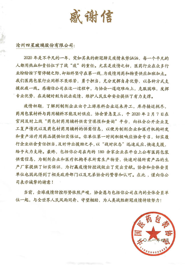 抗擊疫情感謝信-中國醫(yī)藥包裝協(xié)會(huì)